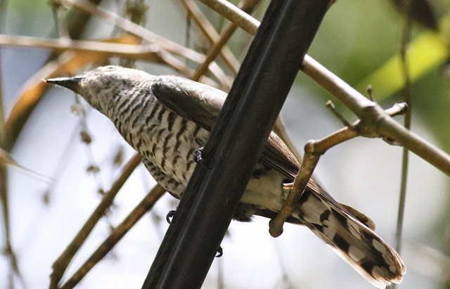 Yup ! its a female Little Bronze Cuckoo. Here you can see a tinge of green hue on her feathers but unfortunately you are not able to see the narrow green orbital eye ring which separate her from the male.